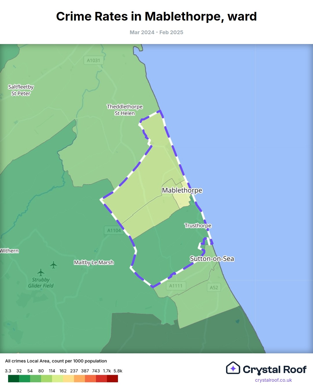 Mablethorpe, (ward) includes areas with the following crime ratings (see map):