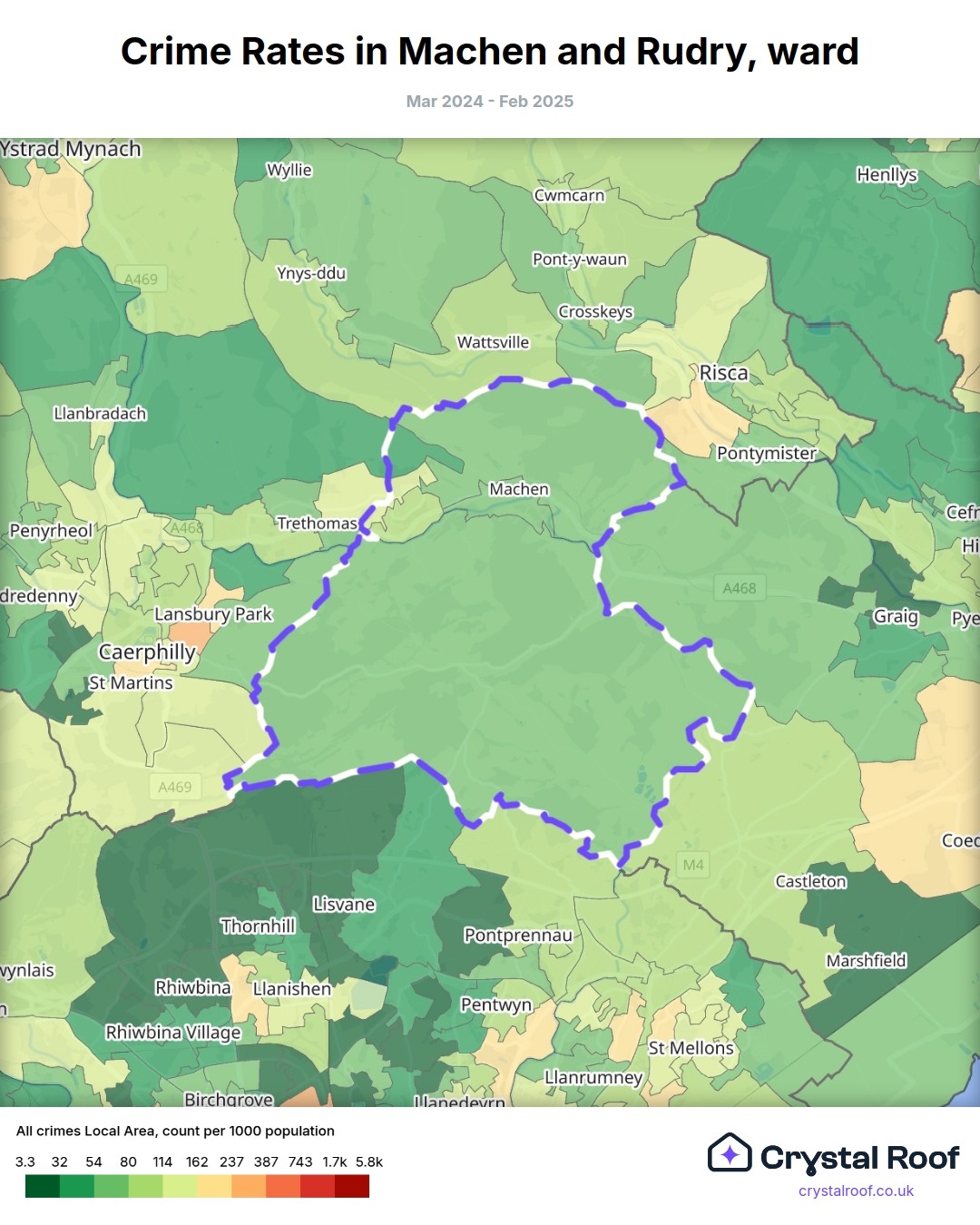 Machen and Rudry, (ward) includes areas with the following crime ratings (see map):