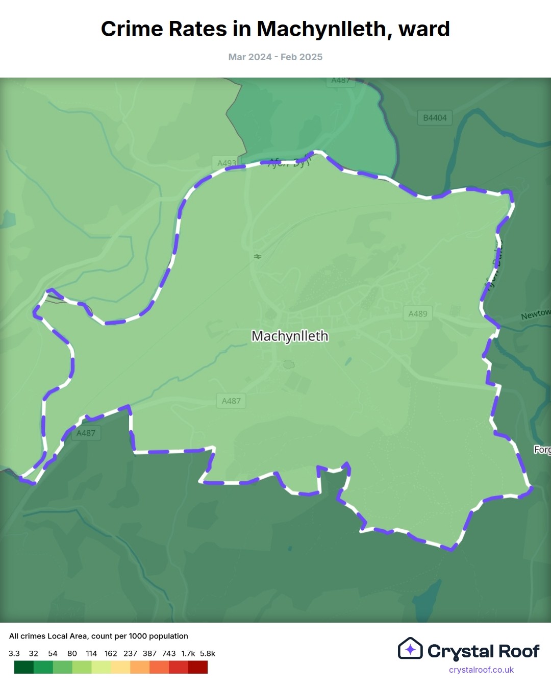 Machynlleth, (ward) includes areas with the following crime ratings (see map):