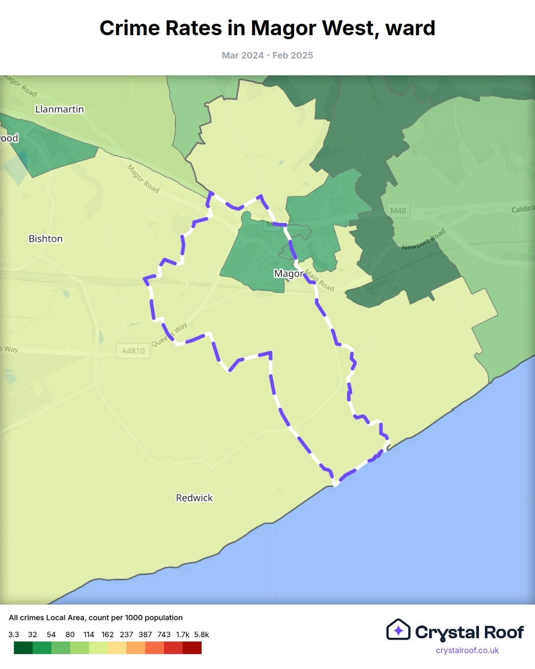 Magor West, (ward) includes areas with the following crime ratings (see map):