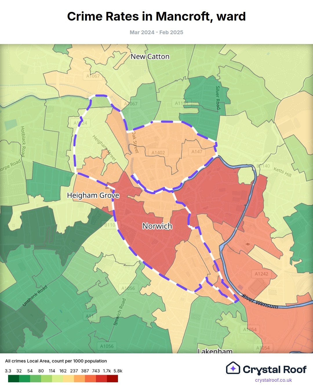 Mancroft, (ward) includes areas with the following crime ratings (see map):