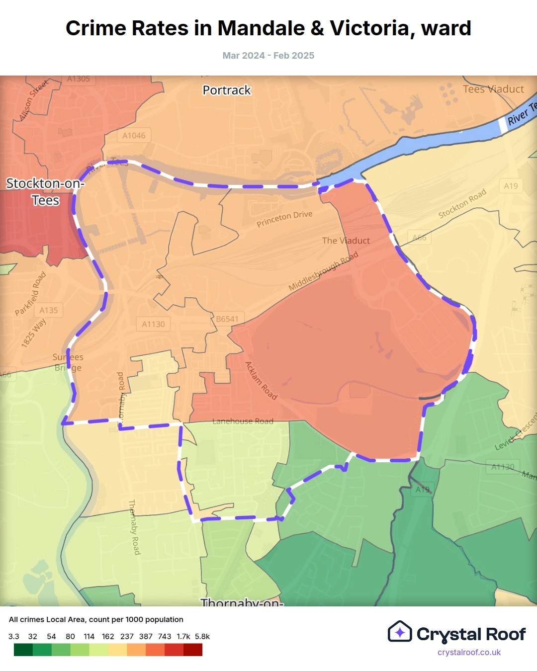 Mandale & Victoria, (ward) includes areas with the following crime ratings (see map):