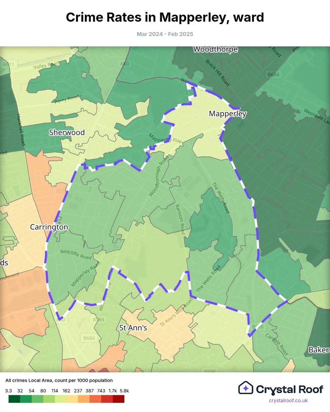 Mapperley, (ward) includes areas with the following crime ratings (see map):