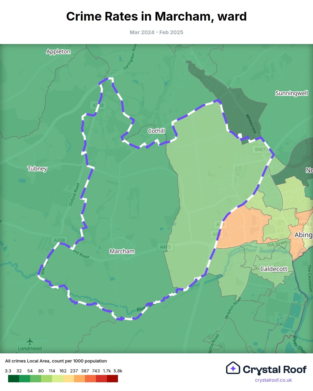 Marcham, (ward) includes areas with the following crime ratings (see map):