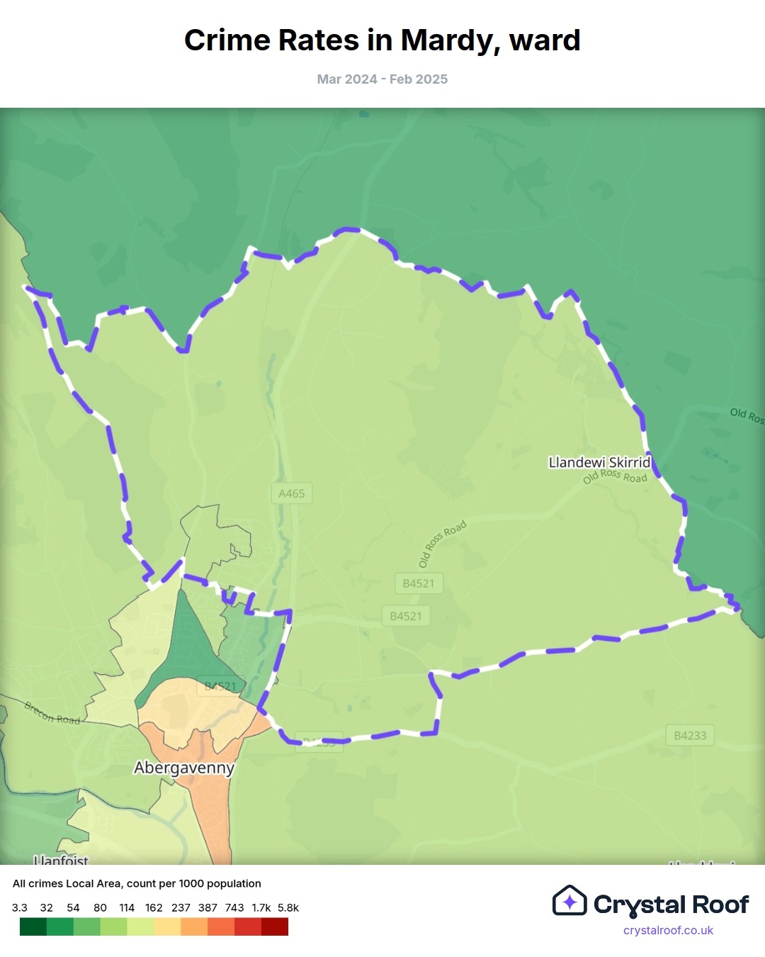 Mardy, (ward) includes areas with the following crime ratings (see map):