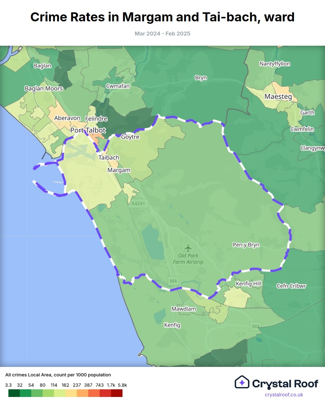 Margam and Tai-bach, (ward) includes areas with the following crime ratings (see map):