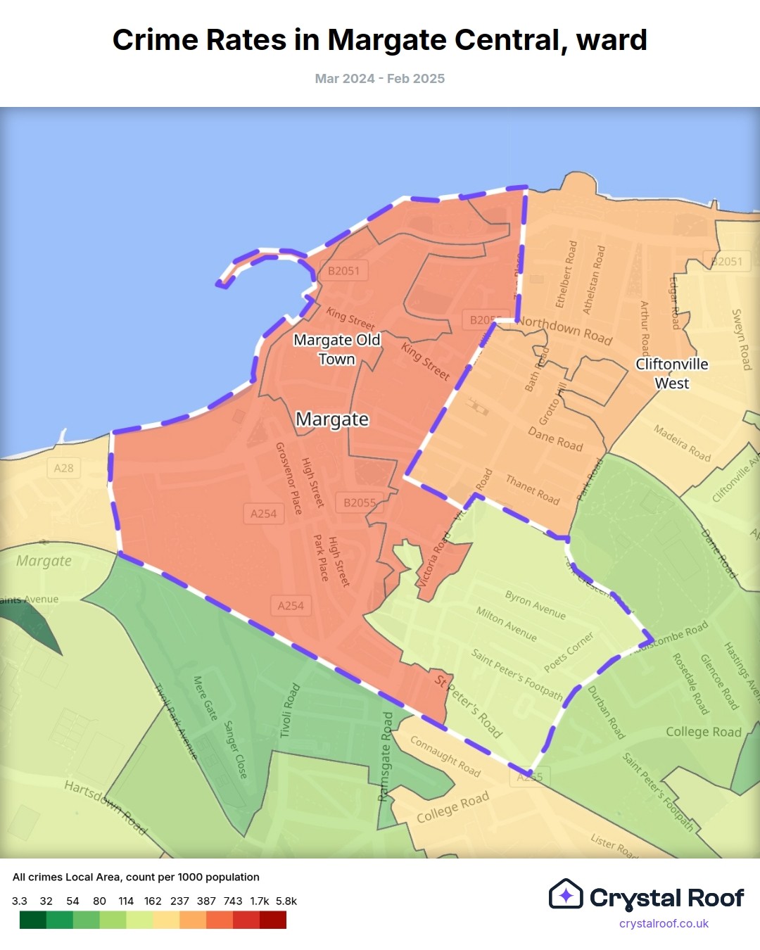 Margate Central, (ward) includes areas with the following crime ratings (see map):