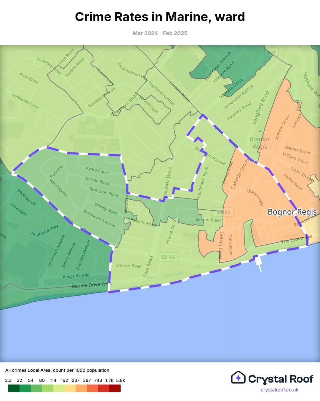 Marine, (ward) includes areas with the following crime ratings (see map):