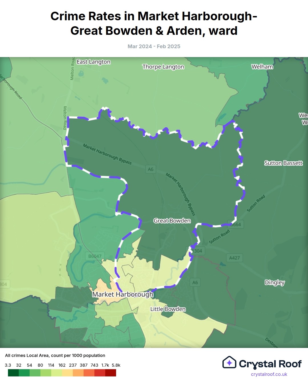 Market Harborough-Great Bowden & Arden, (ward) includes areas with the following crime ratings (see map):