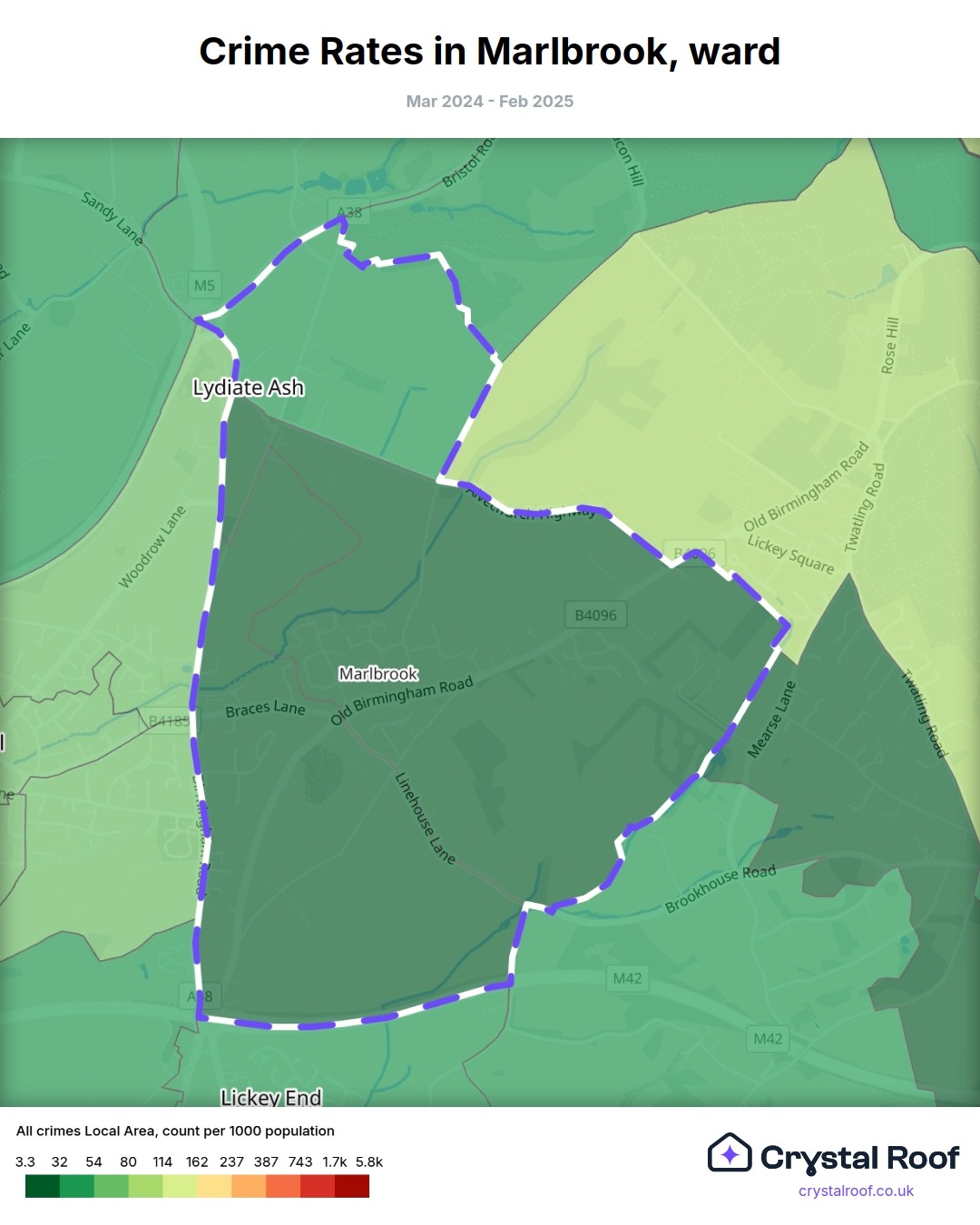 Marlbrook, (ward) includes areas with the following crime ratings (see map):