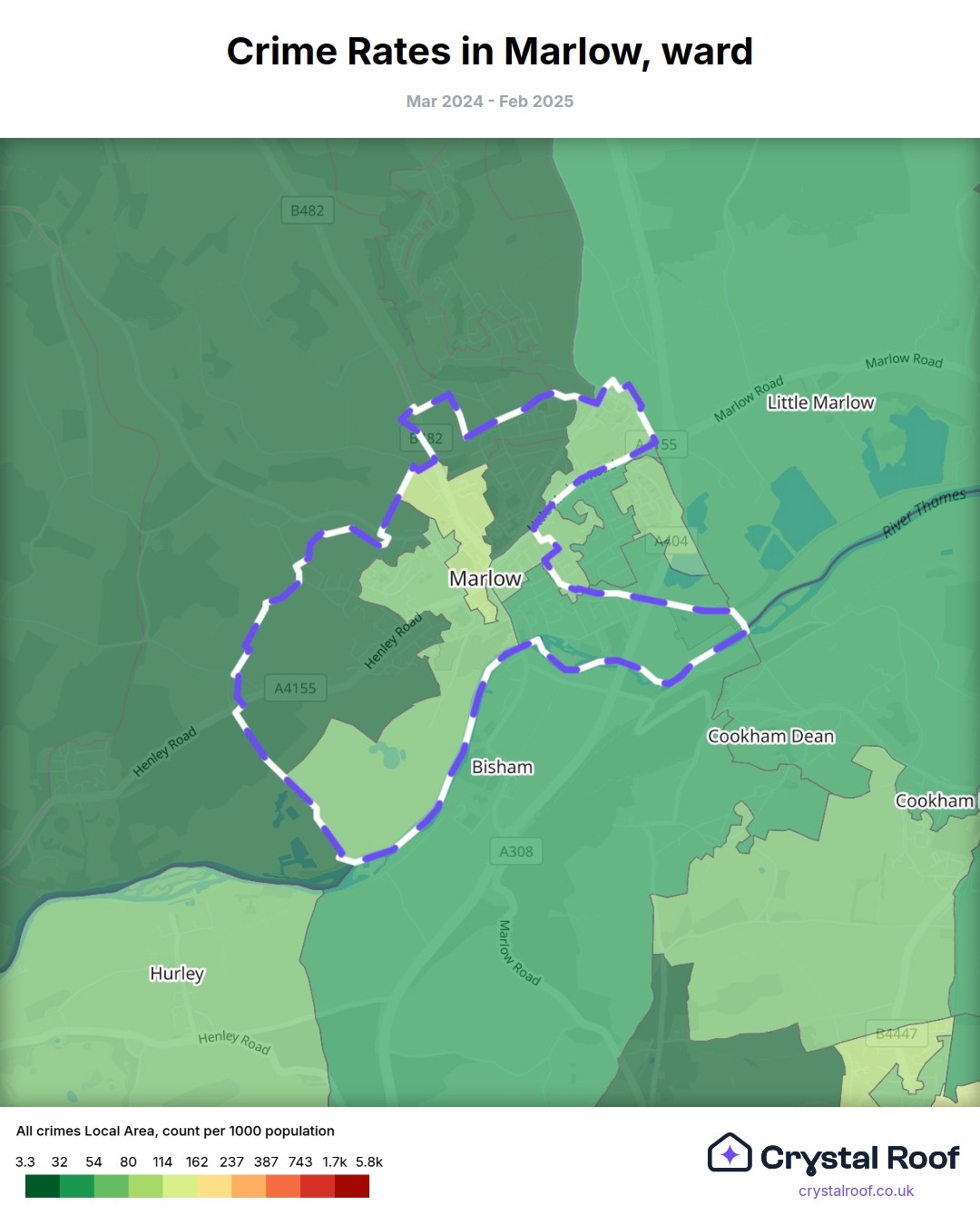 Marlow, (ward) includes areas with the following crime ratings (see map):