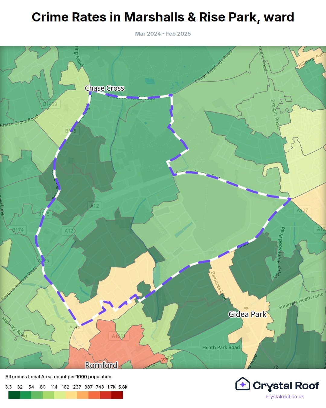 Marshalls & Rise Park, (ward) includes areas with the following crime ratings (see map):
