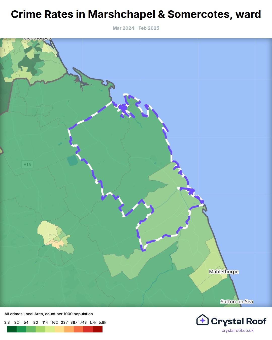 Marshchapel & Somercotes, (ward) includes areas with the following crime ratings (see map):