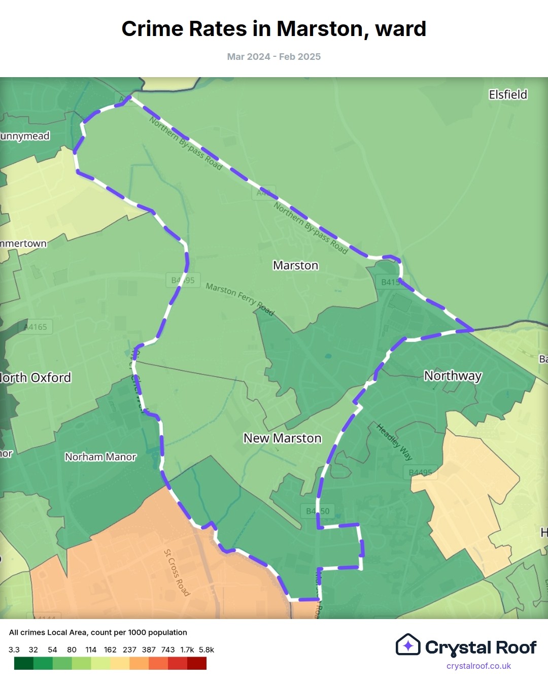 Marston, (ward) includes areas with the following crime ratings (see map):