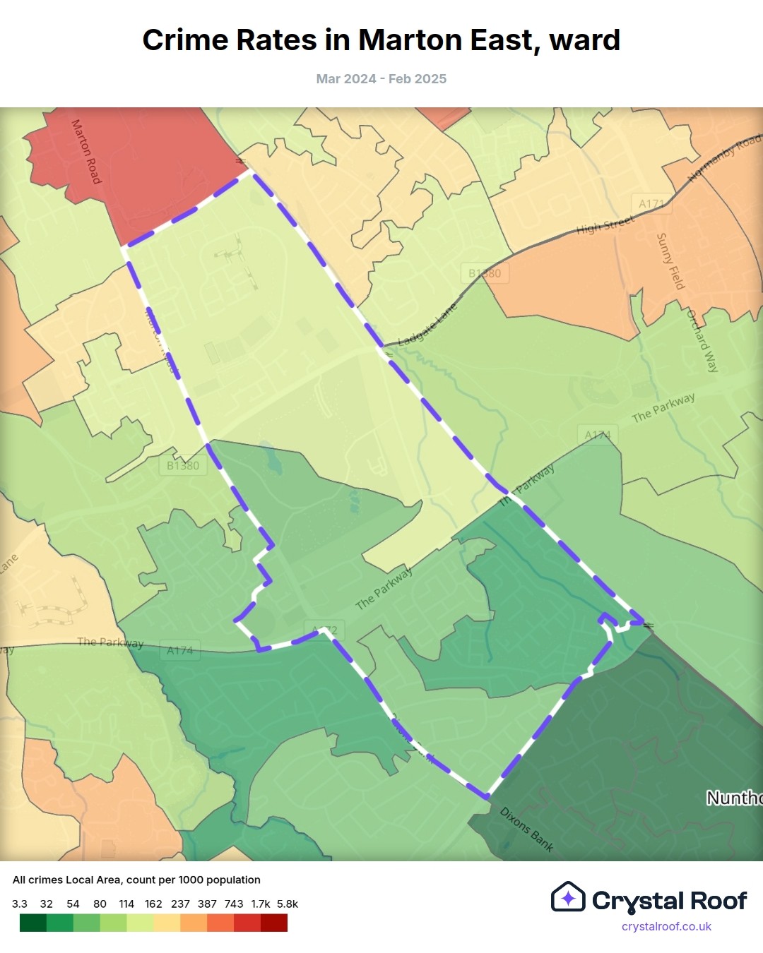 Marton East, (ward) includes areas with the following crime ratings (see map):