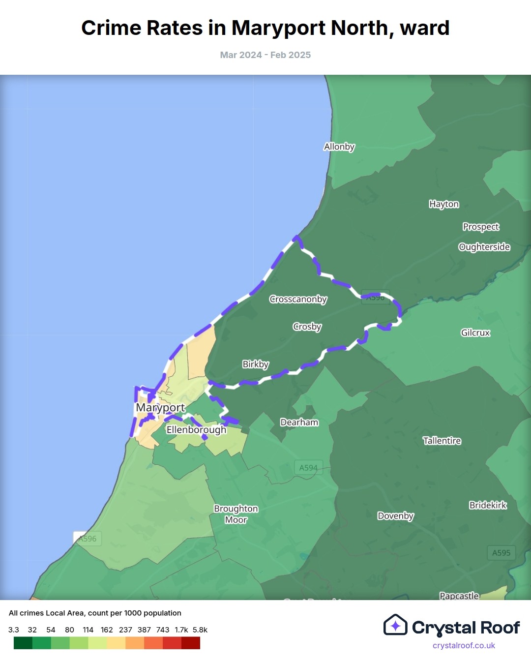 Maryport North, (ward) includes areas with the following crime ratings (see map):