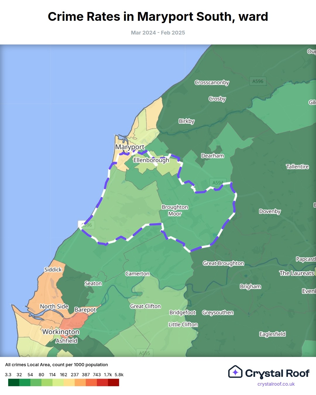 Maryport South, (ward) includes areas with the following crime ratings (see map):