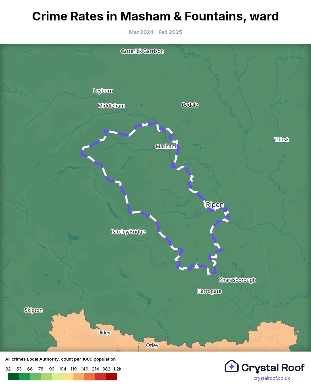 Masham & Fountains, (ward) includes areas with the following crime ratings (see map):