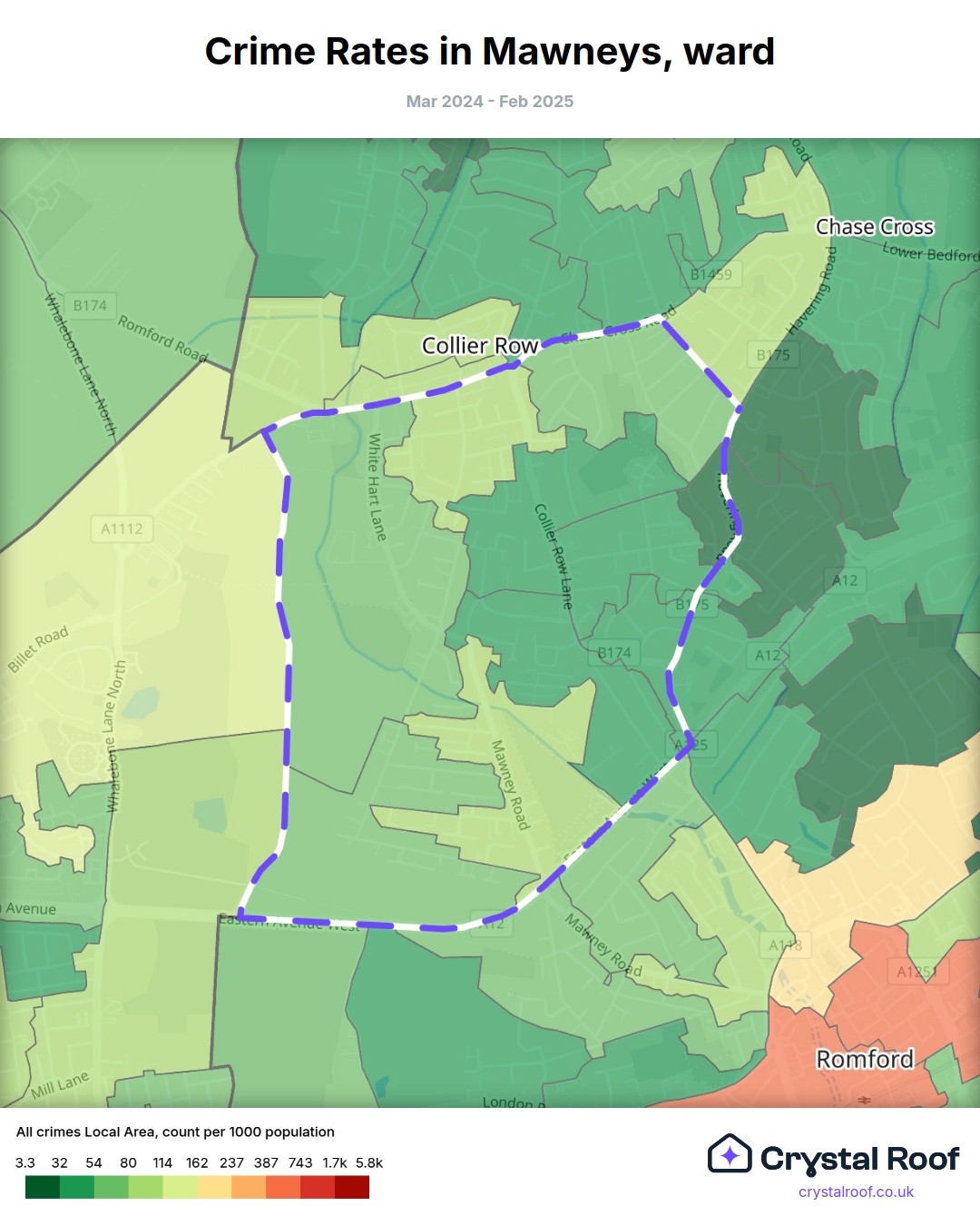 Mawneys, (ward) includes areas with the following crime ratings (see map):