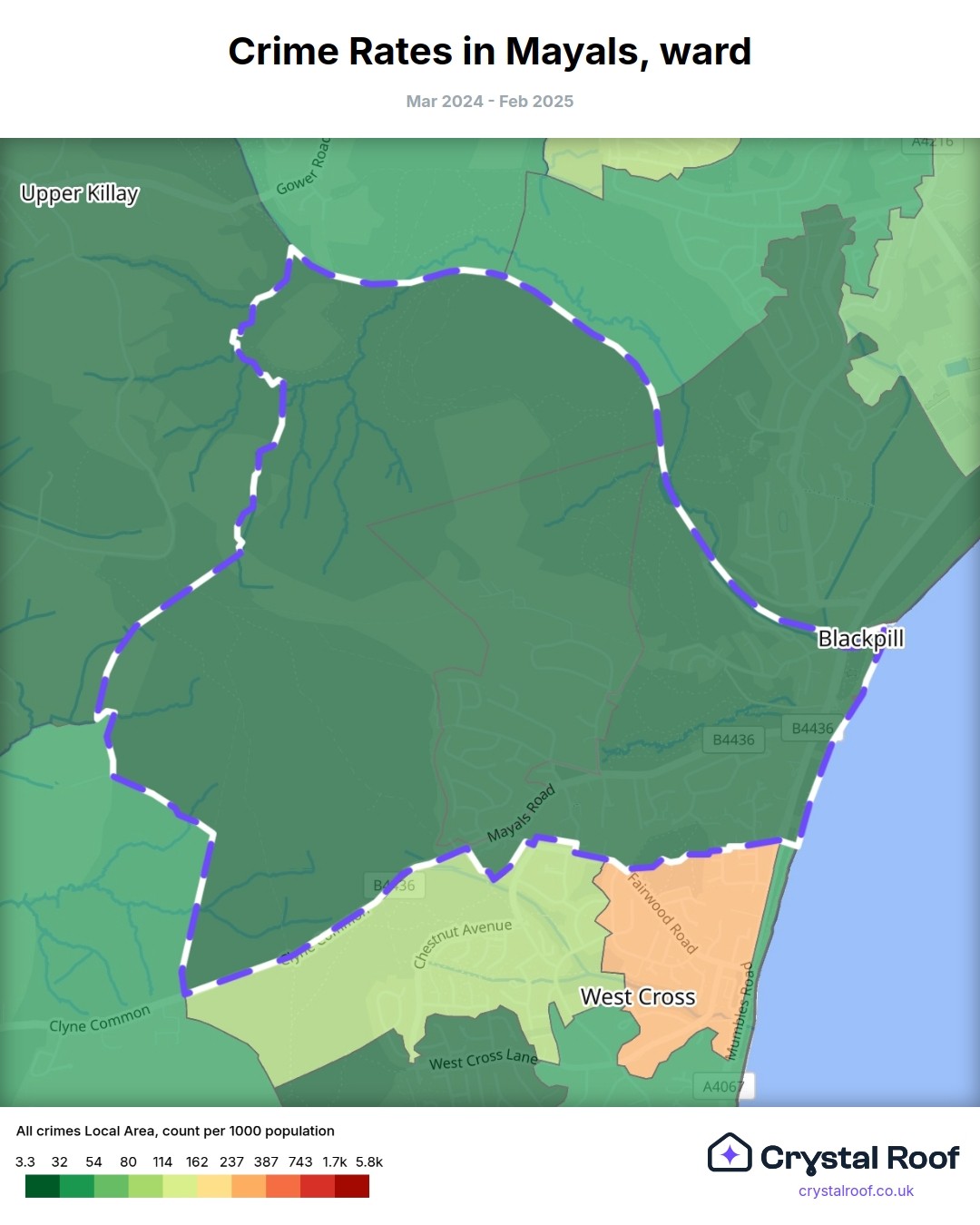 Mayals, (ward) includes areas with the following crime ratings (see map):
