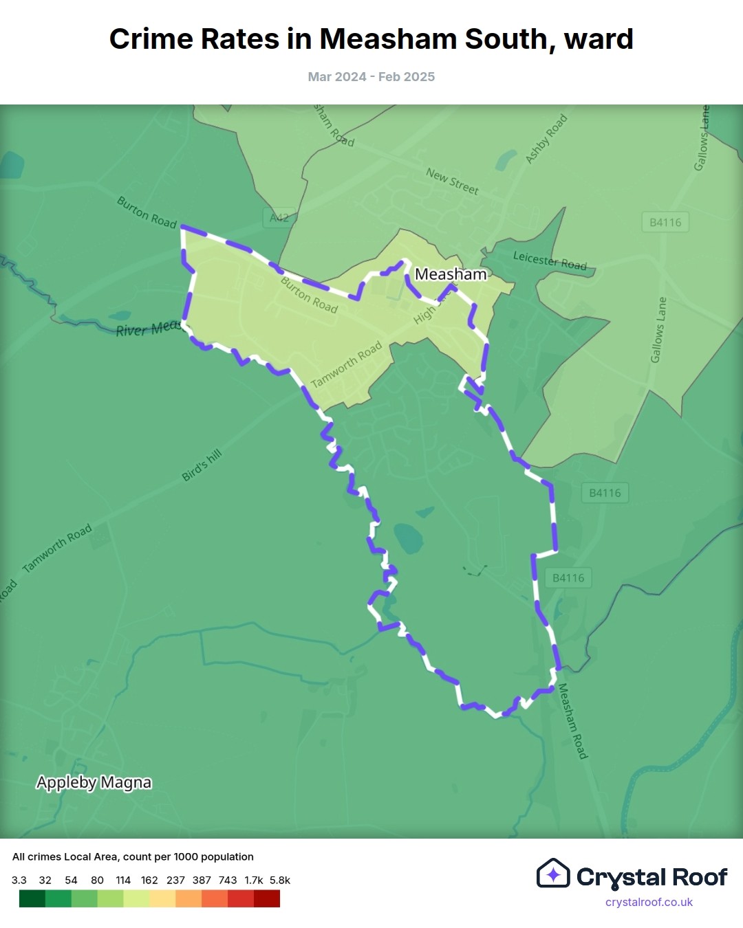 Measham South, (ward) includes areas with the following crime ratings (see map):