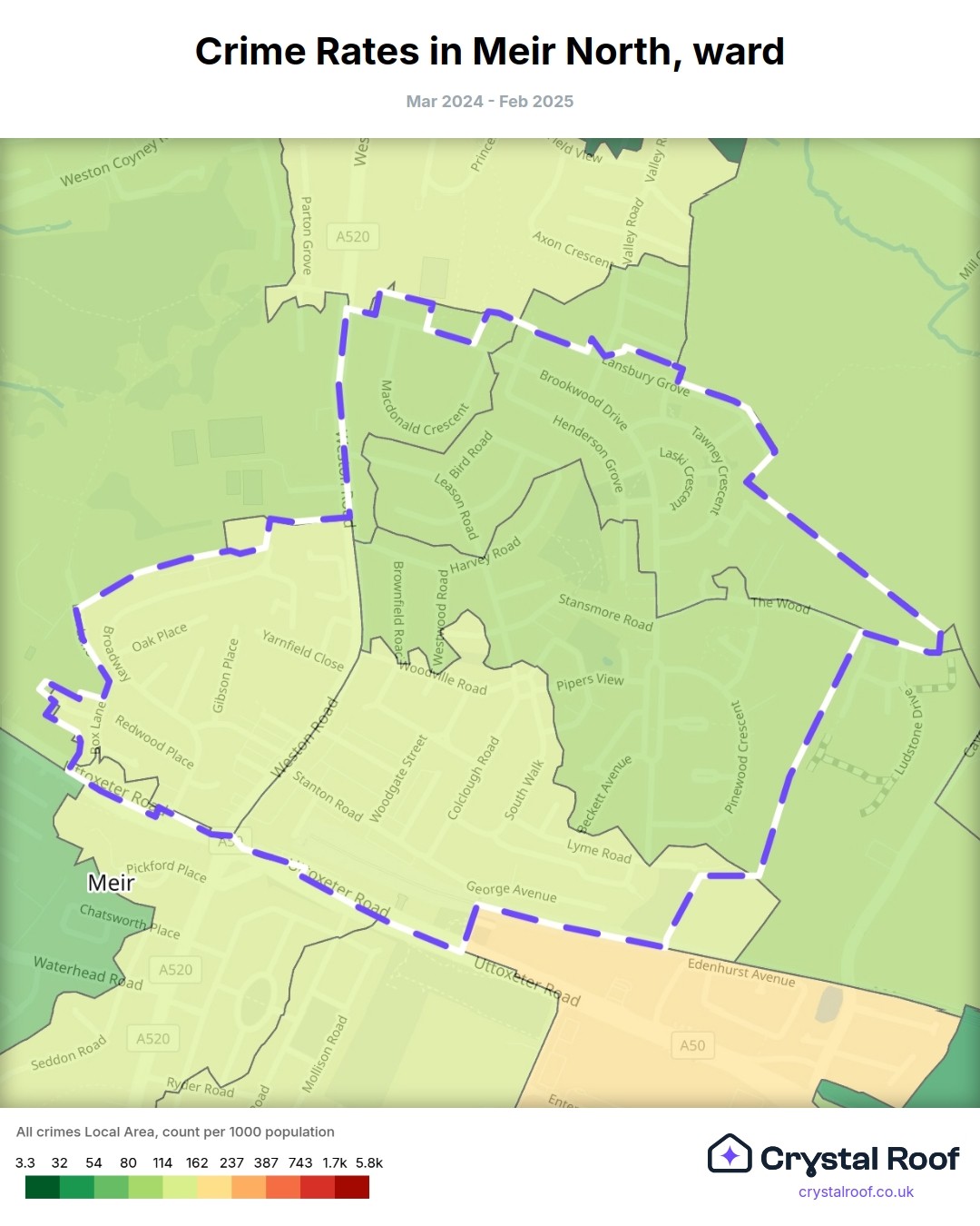 Meir North, (ward) includes areas with the following crime ratings (see map):