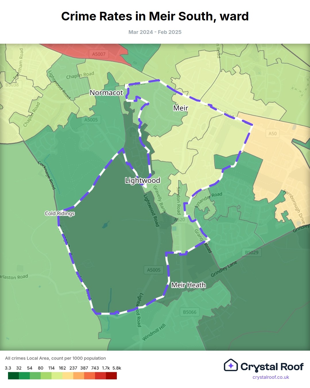 Meir South, (ward) includes areas with the following crime ratings (see map):