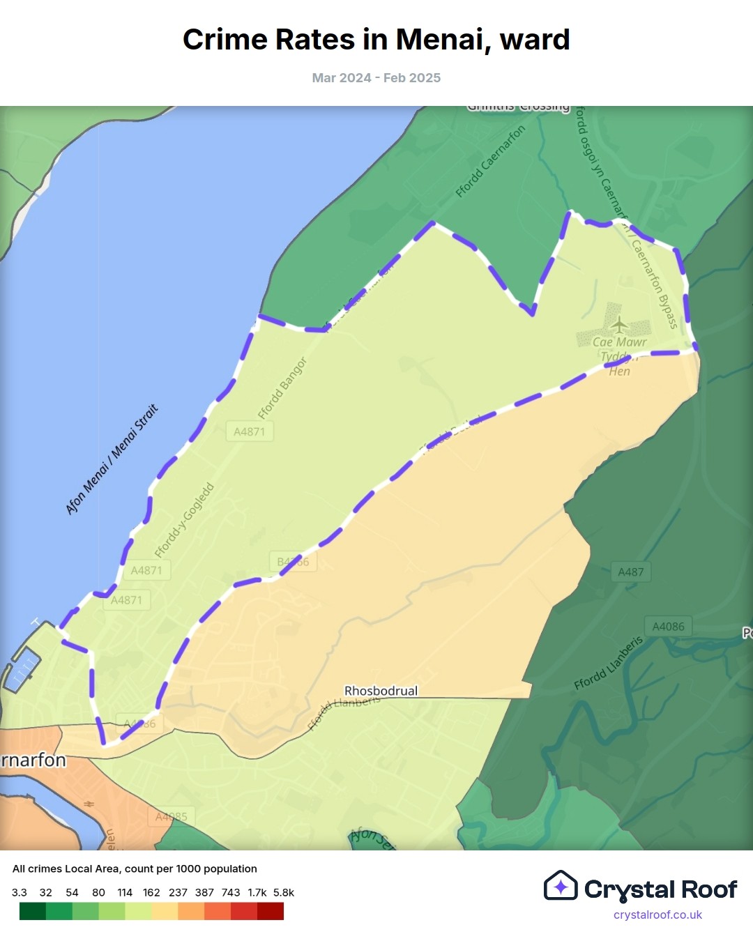Menai, (ward) includes areas with the following crime ratings (see map):