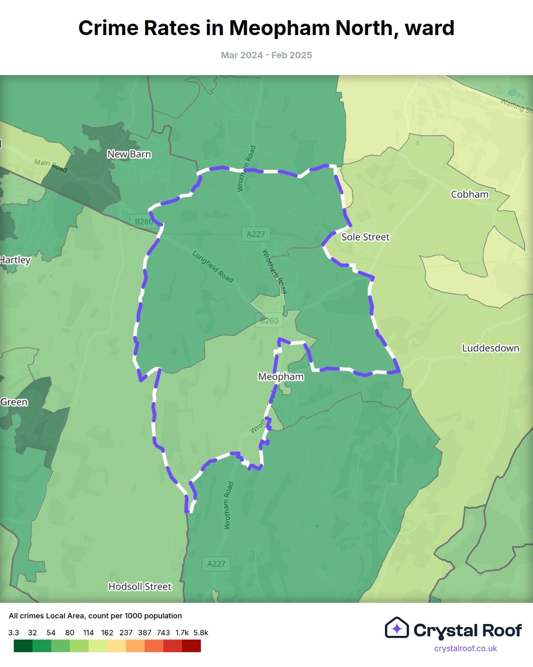 Meopham North, (ward) includes areas with the following crime ratings (see map):