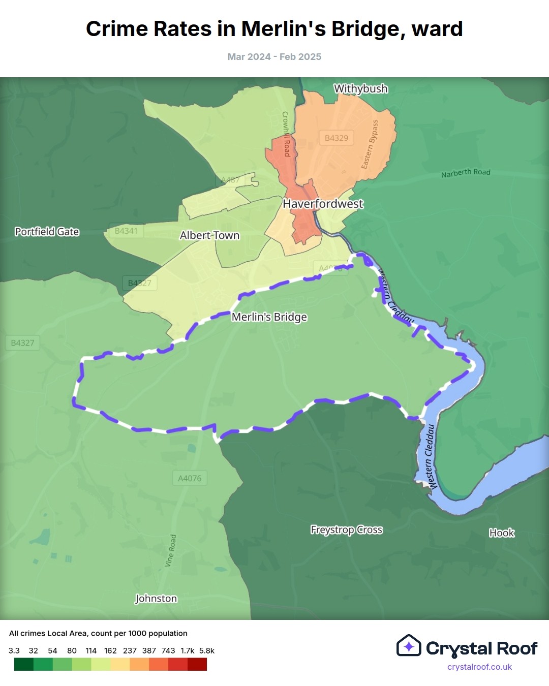 Crime Rates in Merlin's Bridge, ward