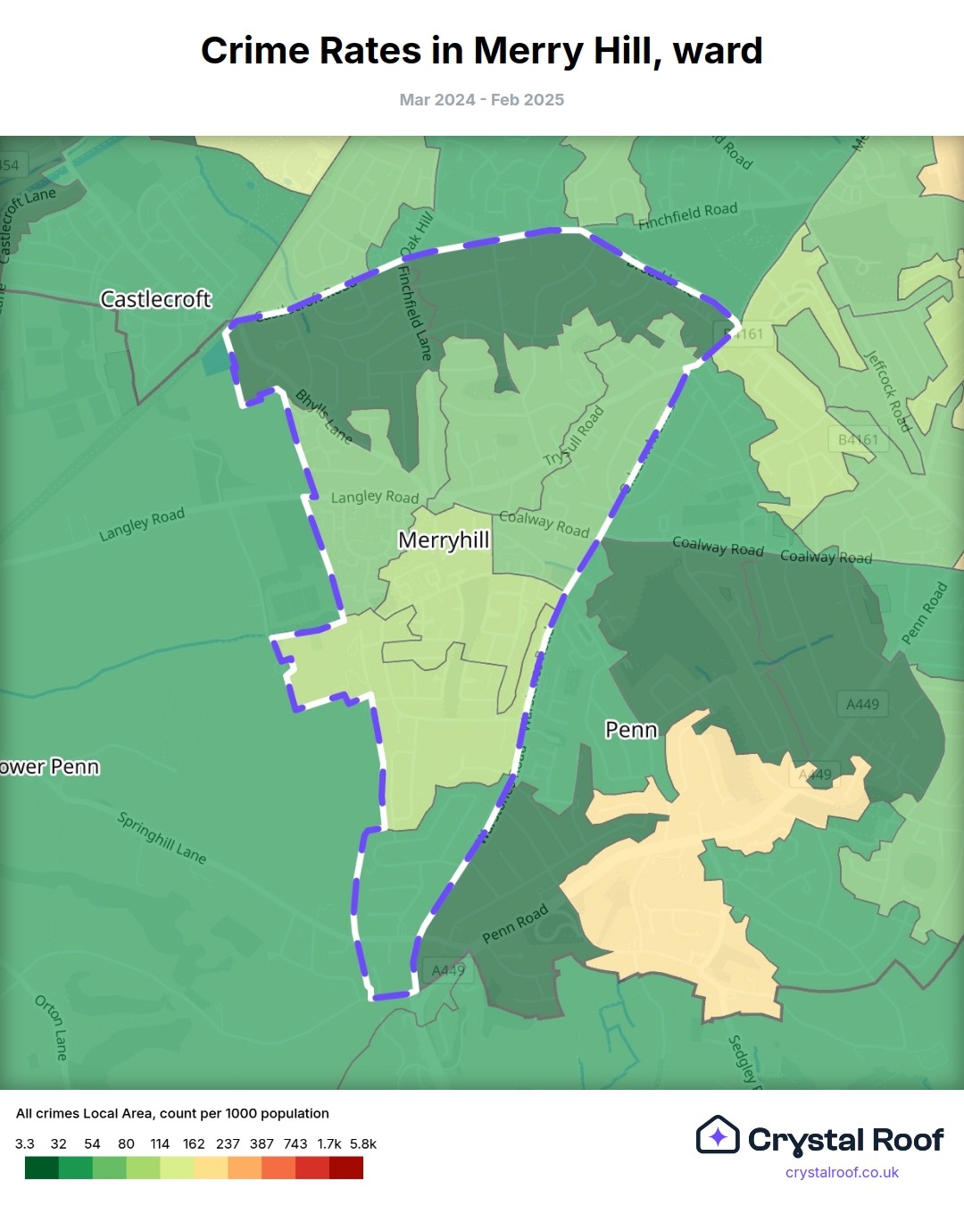 Merry Hill, (ward) includes areas with the following crime ratings (see map):