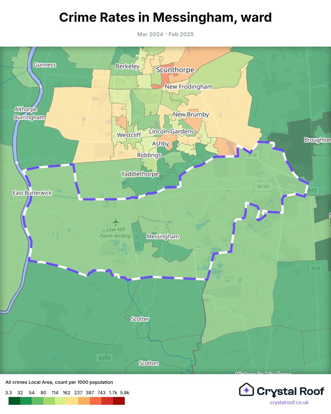 Messingham, (ward) includes areas with the following crime ratings (see map):