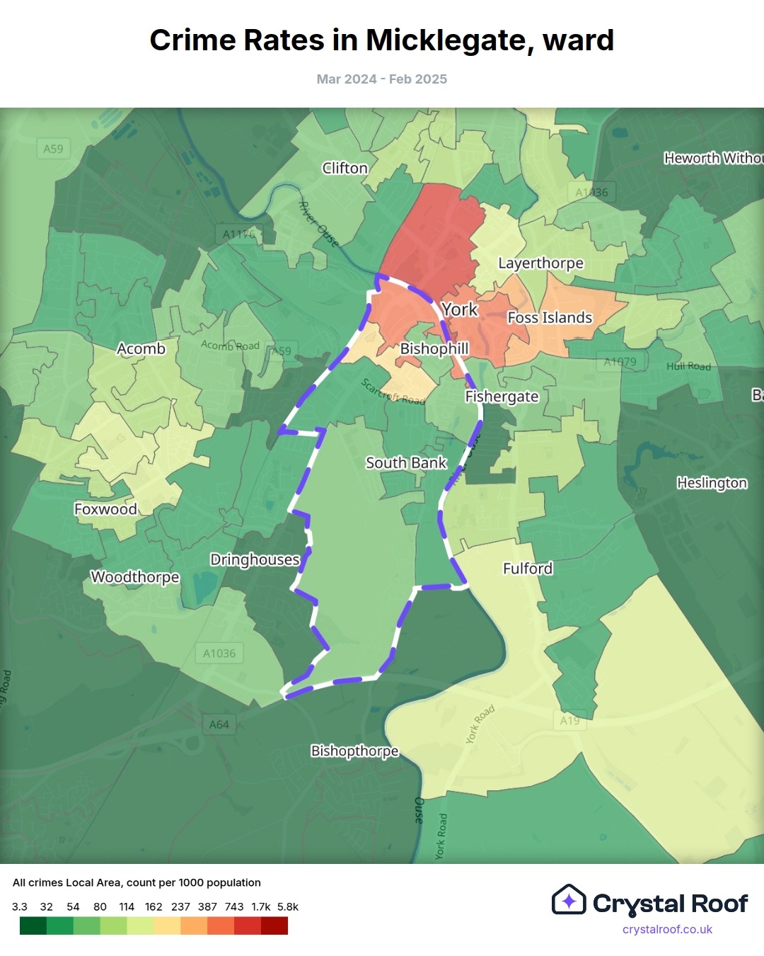 Micklegate, (ward) includes areas with the following crime ratings (see map):