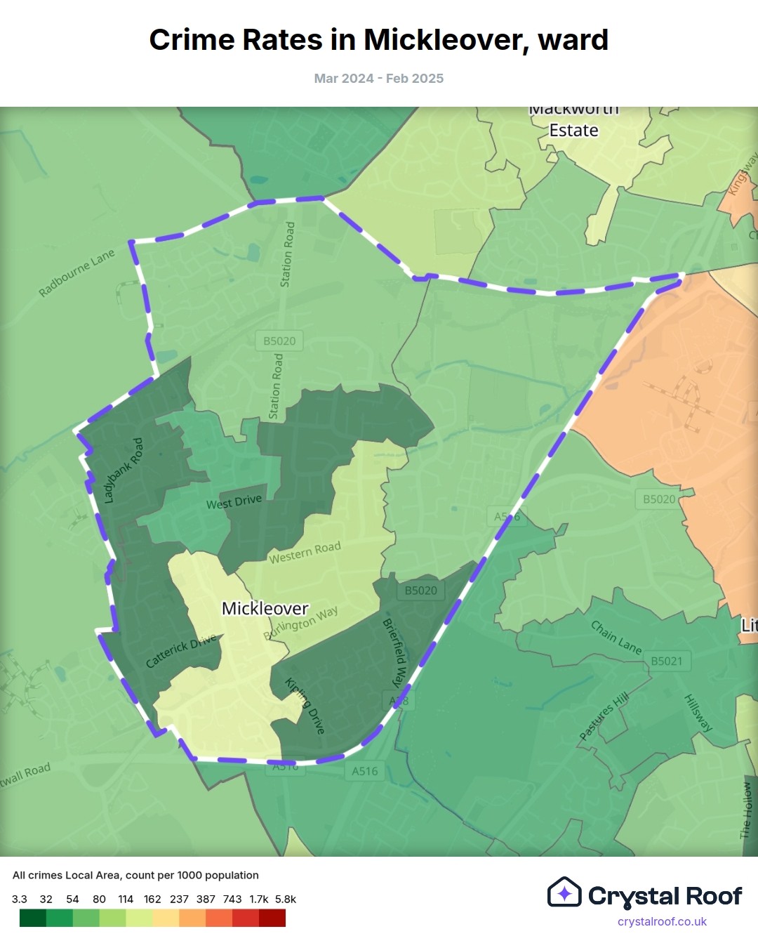 Mickleover, (ward) includes areas with the following crime ratings (see map):