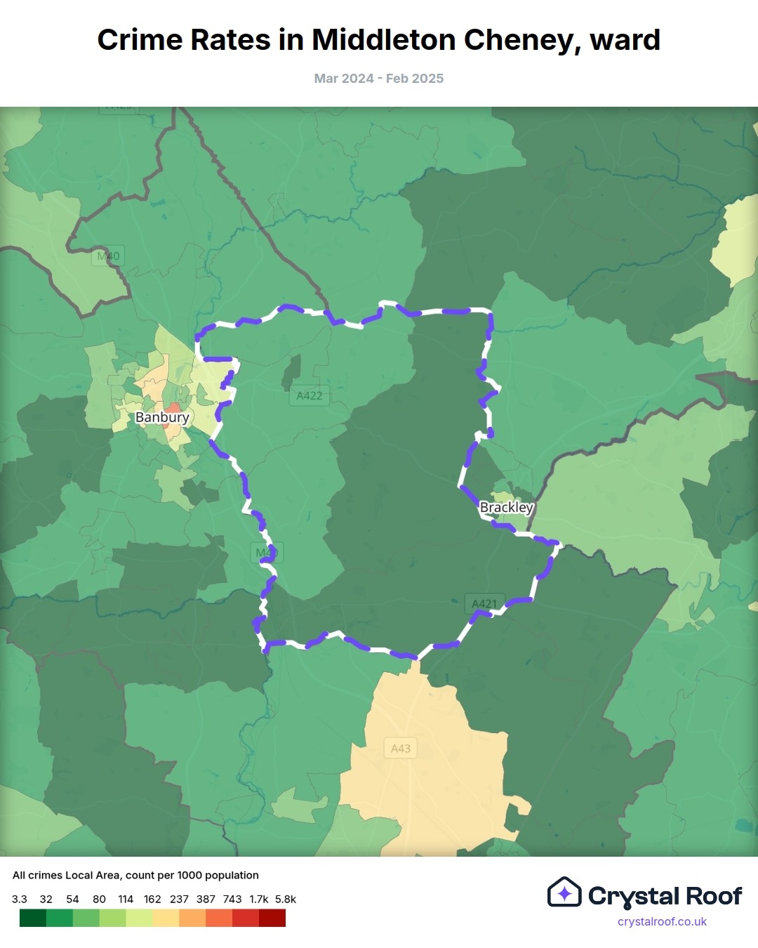 Middleton Cheney, (ward) includes areas with the following crime ratings (see map):
