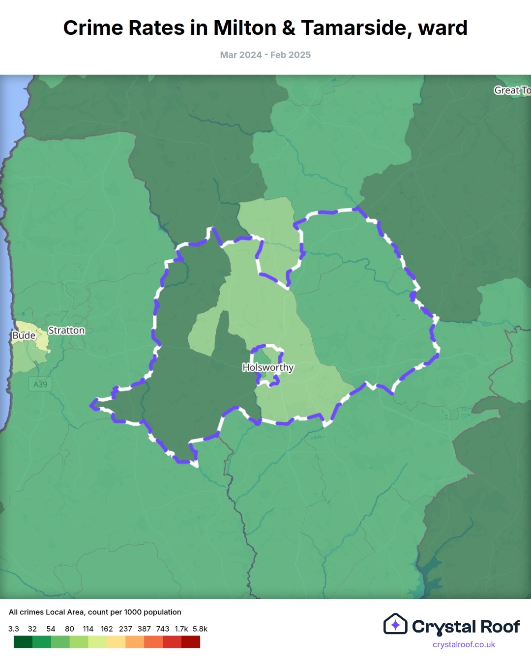 Milton & Tamarside, (ward) includes areas with the following crime ratings (see map):