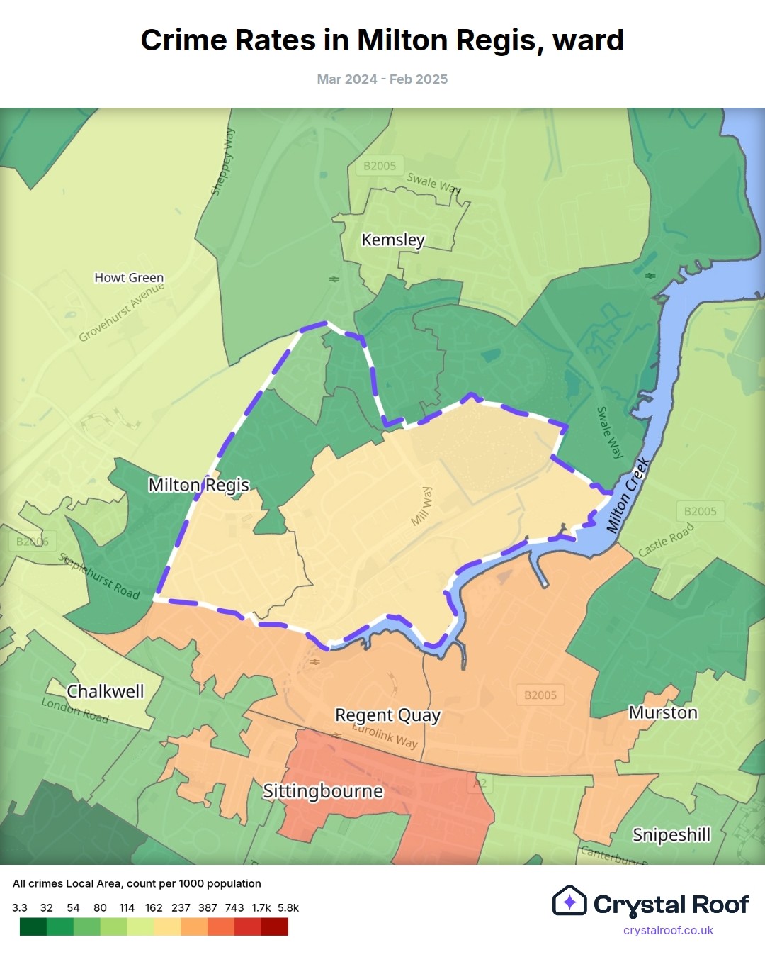 Milton Regis, (ward) includes areas with the following crime ratings (see map):