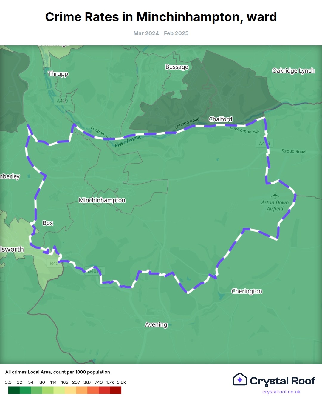Minchinhampton, (ward) includes areas with the following crime ratings (see map):