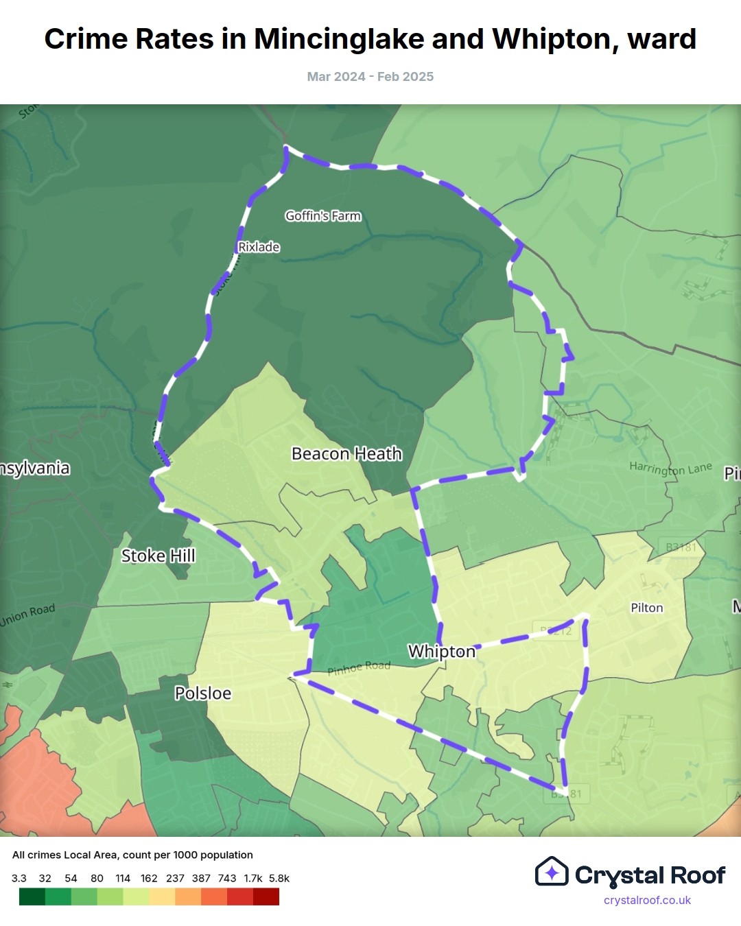Mincinglake and Whipton, (ward) includes areas with the following crime ratings (see map):