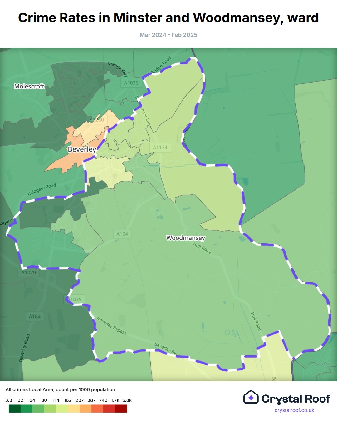 Minster and Woodmansey, (ward) includes areas with the following crime ratings (see map):
