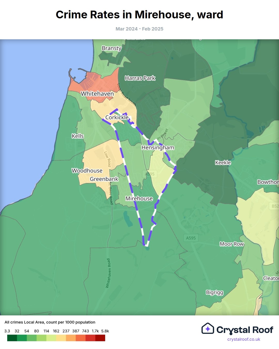 Mirehouse, (ward) includes areas with the following crime ratings (see map):