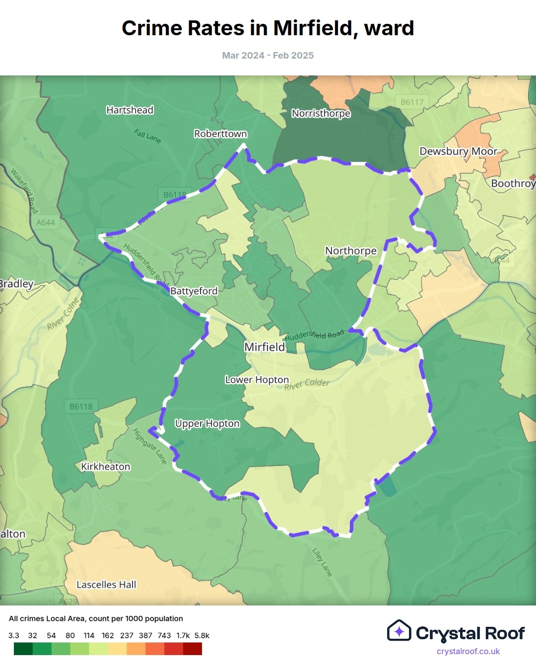 Mirfield, (ward) includes areas with the following crime ratings (see map):