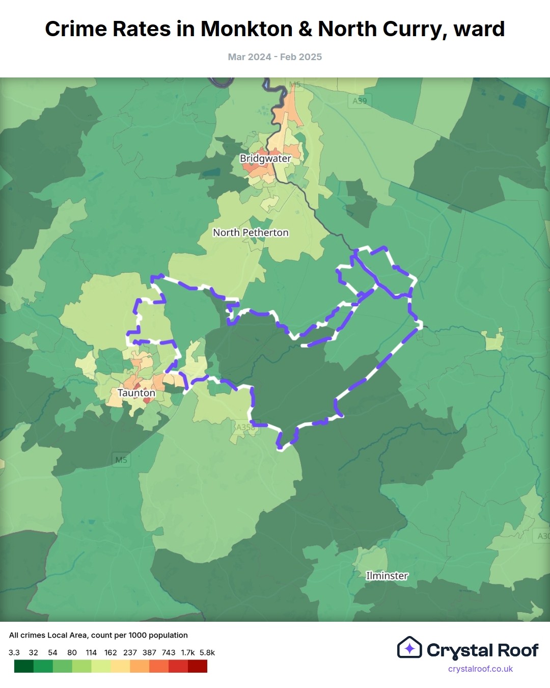 Monkton & North Curry, (ward) includes areas with the following crime ratings (see map):