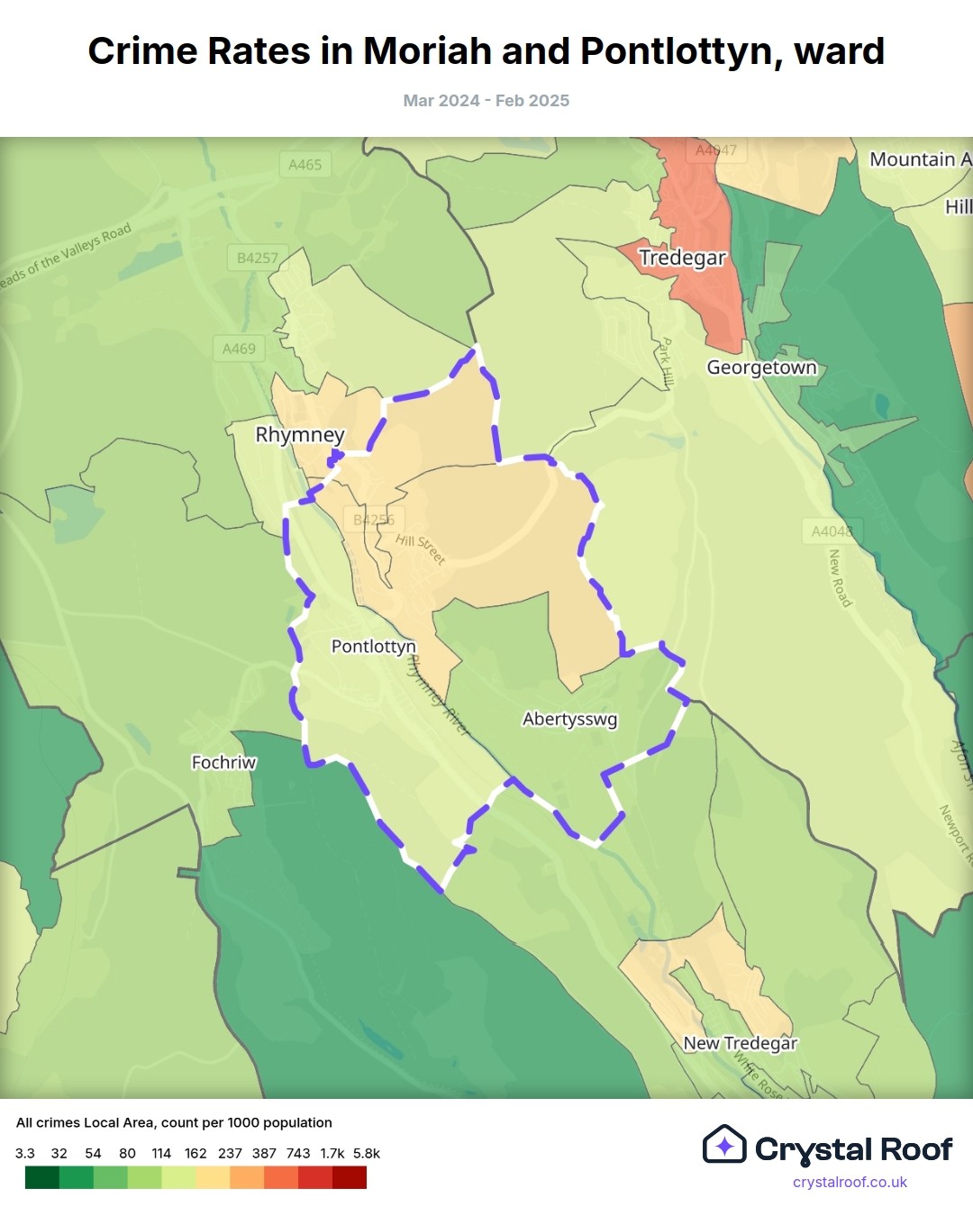 Moriah and Pontlottyn, (ward) includes areas with the following crime ratings (see map):