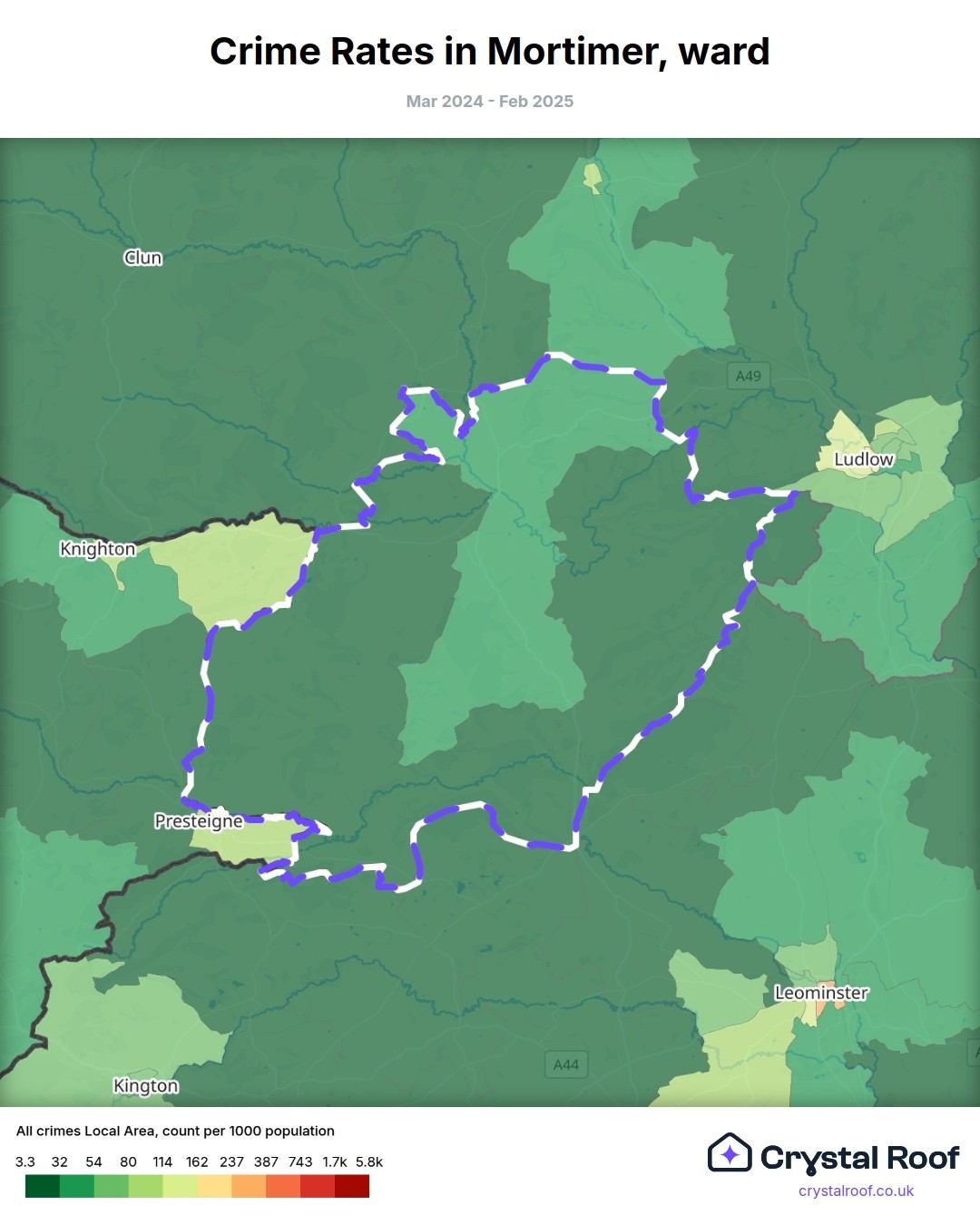 Mortimer, (ward) includes areas with the following crime ratings (see map):