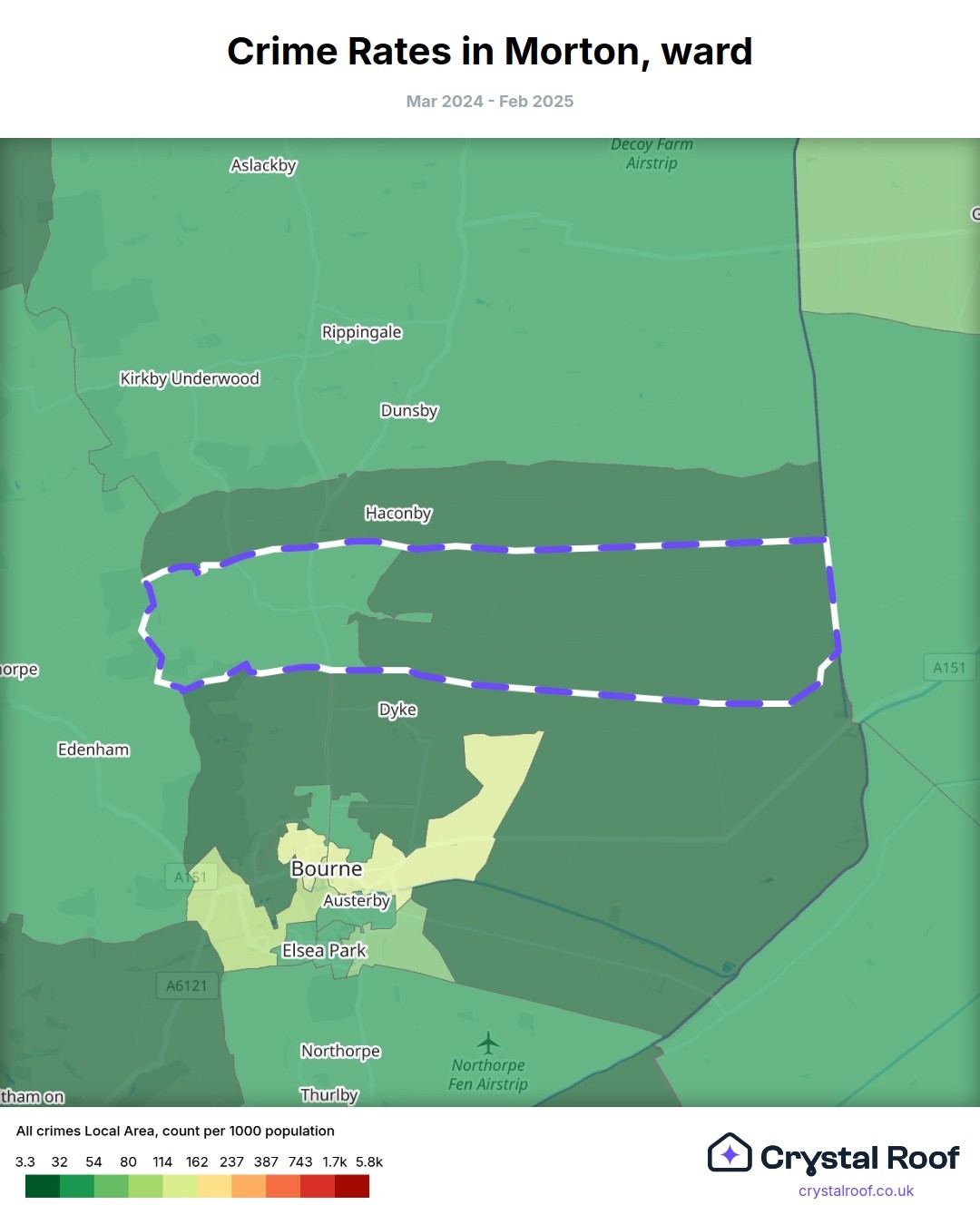 Morton, (ward) includes areas with the following crime ratings (see map):