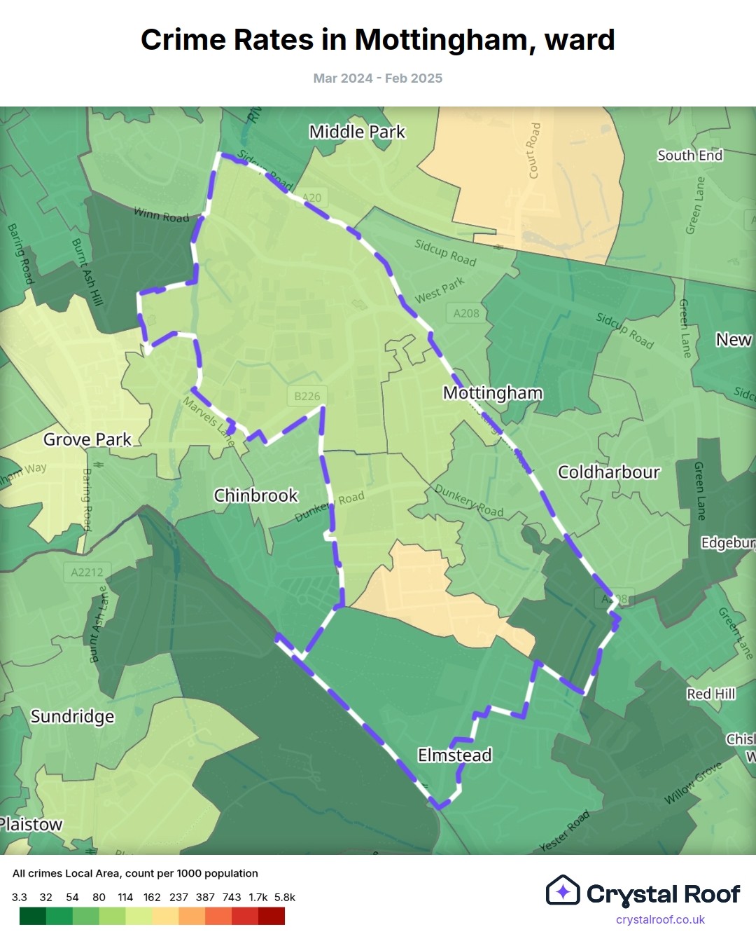 Mottingham, (ward) includes areas with the following crime ratings (see map):