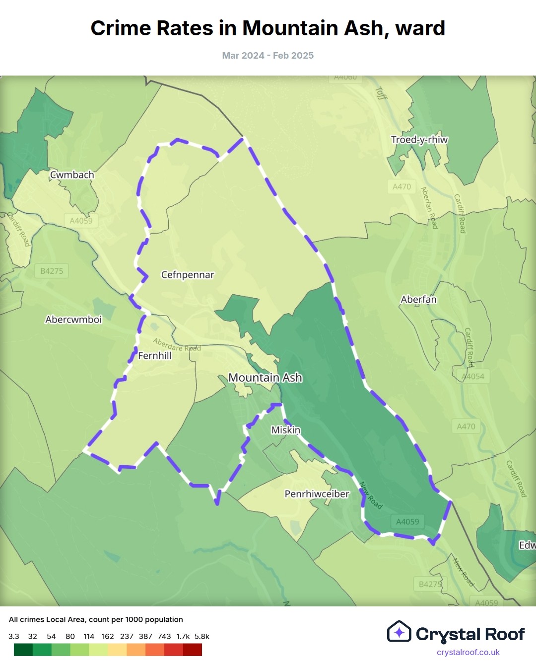 Mountain Ash, (ward) includes areas with the following crime ratings (see map):