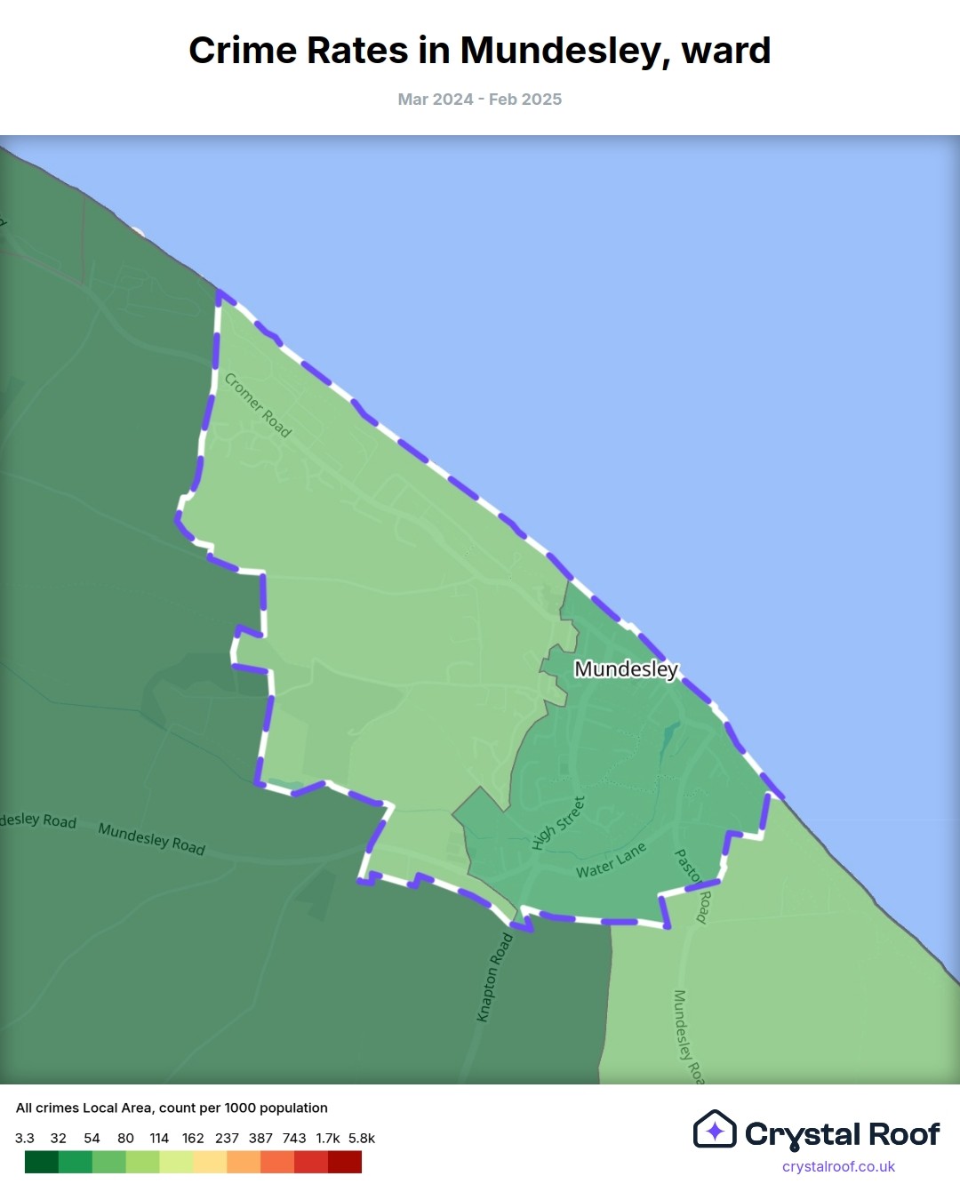 Mundesley, (ward) includes areas with the following crime ratings (see map):