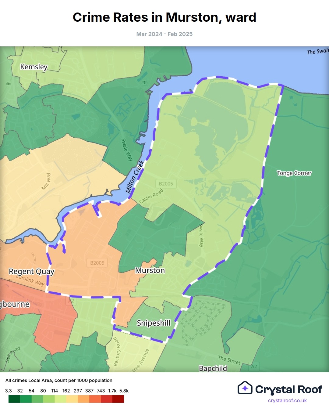 Murston, (ward) includes areas with the following crime ratings (see map):